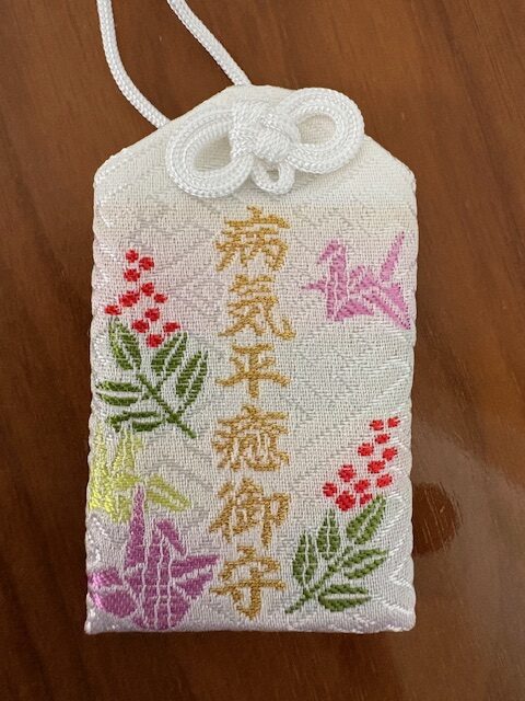 病気平癒のお守りは、心身の回復と健康を願っていただいた。数年前からの重点的な治療がこの度無事に終わり経過観察期間に突入したので、こちらの御守りをいただいた。この神社の創建の逸話が「疫病鎮静」にあるだけに、病気平癒を願って訪れる参拝者も多い。小さなお守りだが、持ち歩くだけで心の支えになる気がする。
